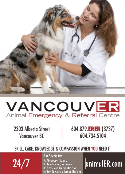 On July 6th the Vancouver Animal Emergency and Referral Centre opened nearby at 2303 Alberta Street (7th and Alberta) in Mount Pleasant. This new clinic offers 24 hour-a-day, 7 days a week care. It is a fully equipped, multi-specialty veterinary hospital that provides comprehensive emergency and referral services.